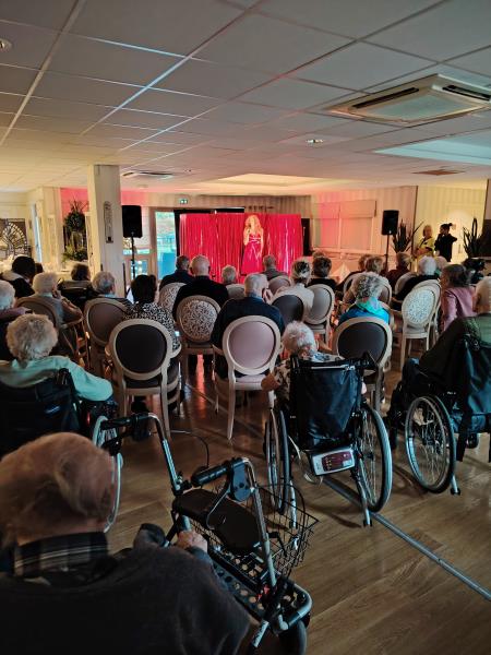 Mercredi aux Terrasses de la Scarpe de Courchelettes, nous avons eu le plaisir d’accueillir l’artiste Maud pour une magnifique prestation en hommage à Dalida. Dès son arrivée, une atmosphère chaleureuse et festive s’est installée dans la salle. Les résidents, déjà impatients, ont rapidement été transportés dans l’univers de la célèbre chanteuse dès les premières notes. Maud a su recréer toute l’élégance, la sensibilité et l’énergie qui caractérisaient Dalida, offrant ainsi un véritable moment de magie.