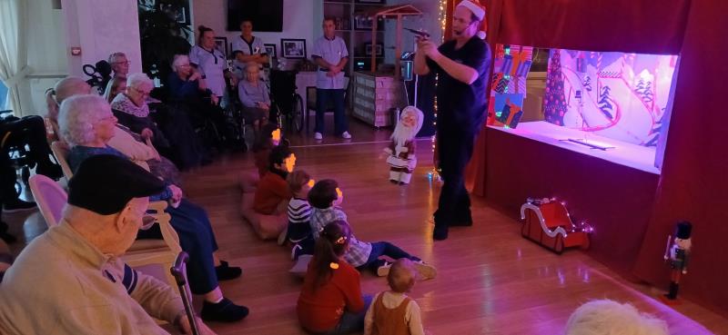 Hier, à l'Ehpad les terrasses de la scarpe, petits et grands se sont retrouvés pour un joli goûter animé par un spectacle de marionnettes animé par un membre de la troupe du théatre de "La filoche" de Villeuneuve d'ascq. Un moment plein de magie et de sourires, qui a enchanté tout le monde ! Et pour finir en beauté, une merveilleuse surprise attendait les enfants : le Père Noël et la Mère Noël sont venus leur rendre visite et leur offrir de petits cadeaux, pour le plus grand bonheur de tous 🎄🎁